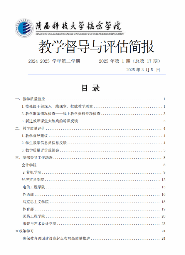 陕西科技大学镐京学院督导简报2024-2025-2 学期(第 1 期)