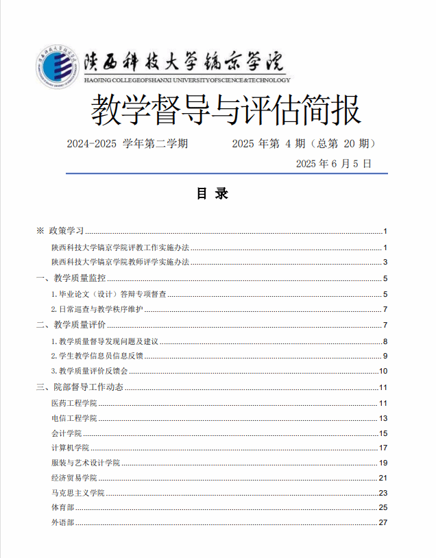 陕西科技大学镐京学院 督导简报 2024-2025-2 学期(第 4 期)
