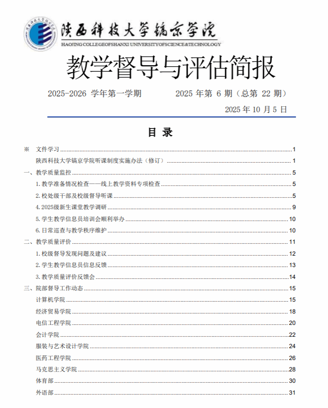 2025-2026 学年第一学期 2025年(第6期) 教学督导与评估简报