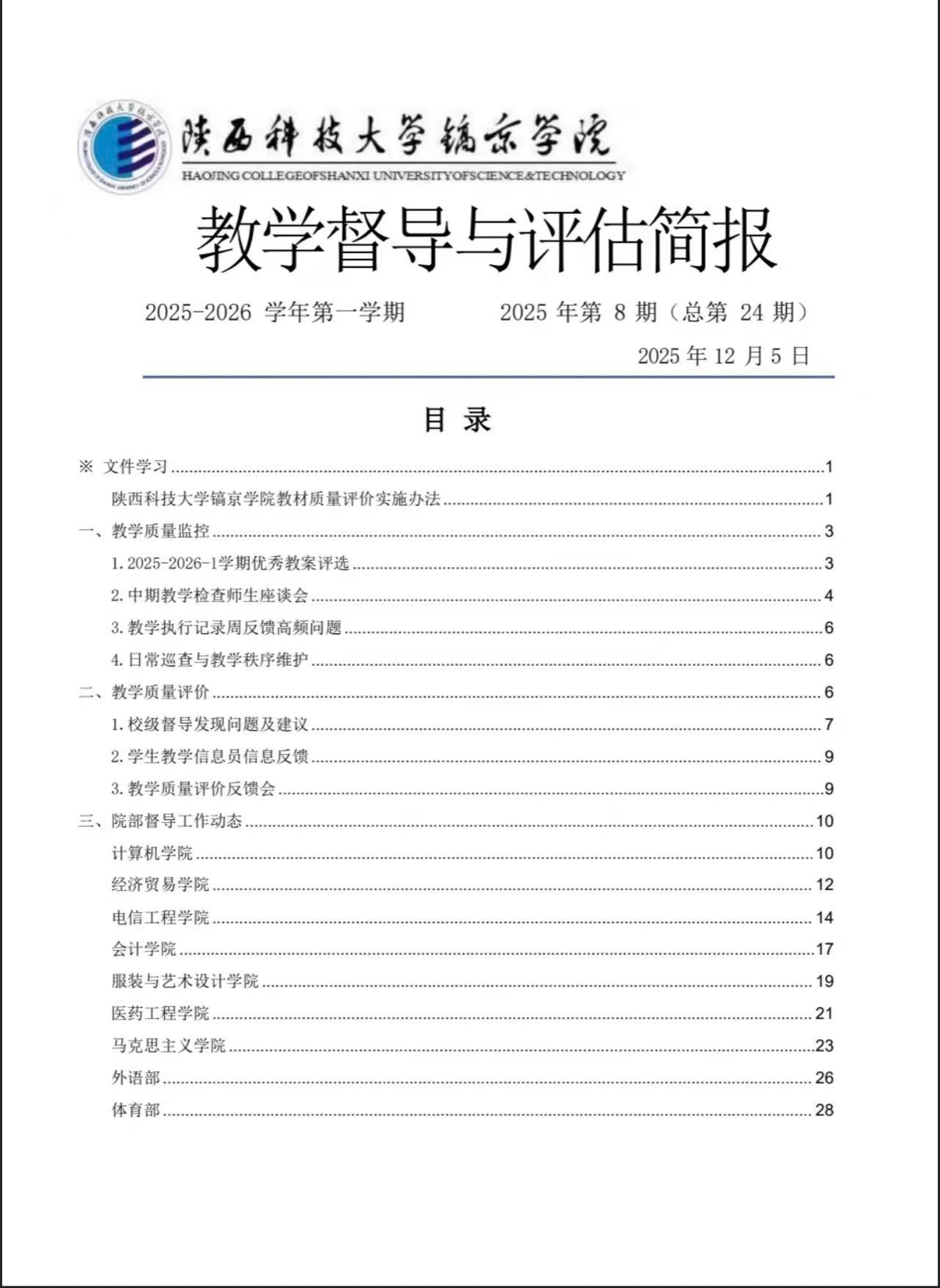 2025-2026 学年第一学期 2025年(第8期)教学督导与评估简报