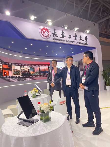 此外,高博会展示的多项校企合作案例,如数字化实训基地建设、智能课堂项目等,为镐京学院深化产教融合提供了借鉴。刘斌助理长提到:“通过校企协同,我们将致力于将科研成果快速转化为教育实践,推动学校教学质量全面提升。”