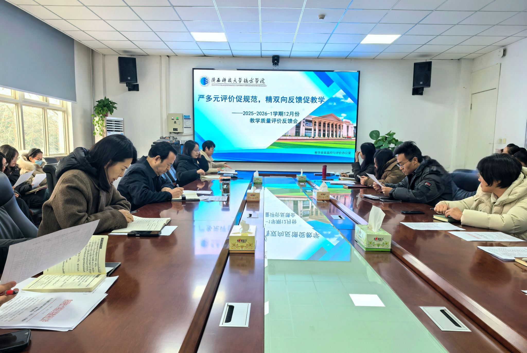 首先由质评办主任赵莉围绕“严多元评价促规范,精双向反馈促教学”主题,对12月各项教学质量监控工作情况进行了全面总结反馈。尤其是在此次的教材质量评价中,对于评分较低的教材建立预警信息库,为后期的教材选用提供参考数据。在此次的评教评学数据中,相关部门要加强对数据的分析与应用,将统计结果转化为改进教学、优化管理的实际依据,同时,要建立“数据反馈—部门回应—改进跟踪”的工作闭环,确保数据切实指导各项工作的开展,共同推动学校教学质量提升。
