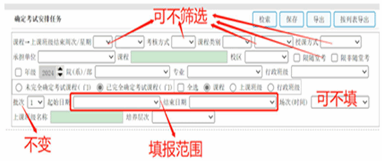 各教学单位申请填报数据要认真准确,过程性考核方式不填报。各教研室须认真审核考试计划,确保考试计划合规合理。各教学单位领导对考试计划全面把控,审核计划可行性或给出指导性意见,保证考试计划符合人才培养方案及课程标准等文件要求。