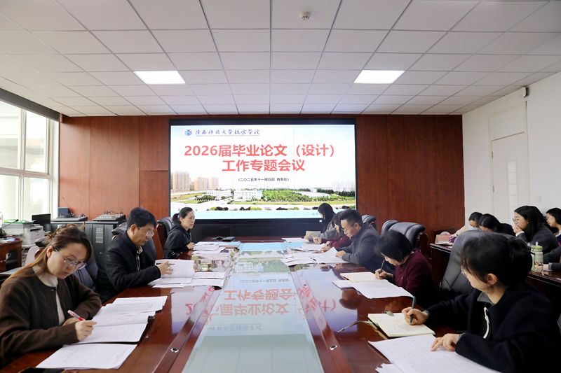 为全面贯彻立德树人根本任务,深入落实本科教育教学审核评估要求,切实提升毕业论文(设计)质量与管理规范化水平,我校于2025年11月5日下午在第一会议室隆重召开2026届毕业论文(设计)工作专题会议。执行校长黄国泉出席会议并作重要指示,学生处副处长杨蒙蒙、各二级学院负责人、教研室(系)主任及教务处相关人员参会。会议由教务处副处长刘小庆主持。会议伊始,刘小庆就新修订的《陕西科技大学镐京学院本科毕业论文(设计)工作